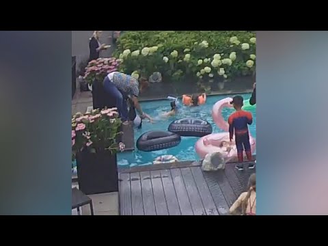 Najib Amhali heeft bewakingsbeelden online gezet waarop te zien is hoe zijn neefje, die nog niet kan zwemmen, uit het zwembad gered wordt van de verdrinkingsdood.
